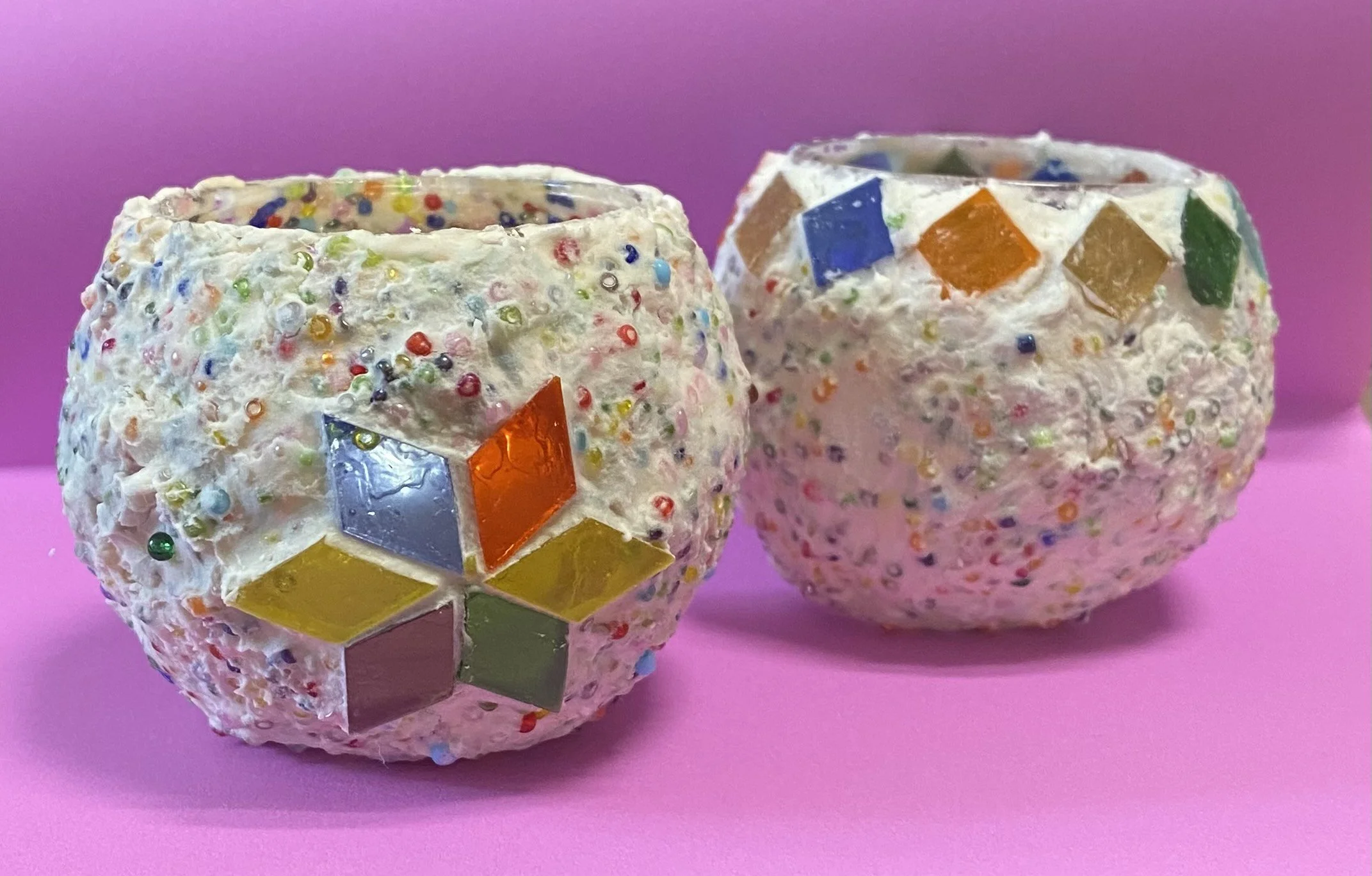 Make a gorgeous mosaic glass votive holder. Space is limited; please register below.
